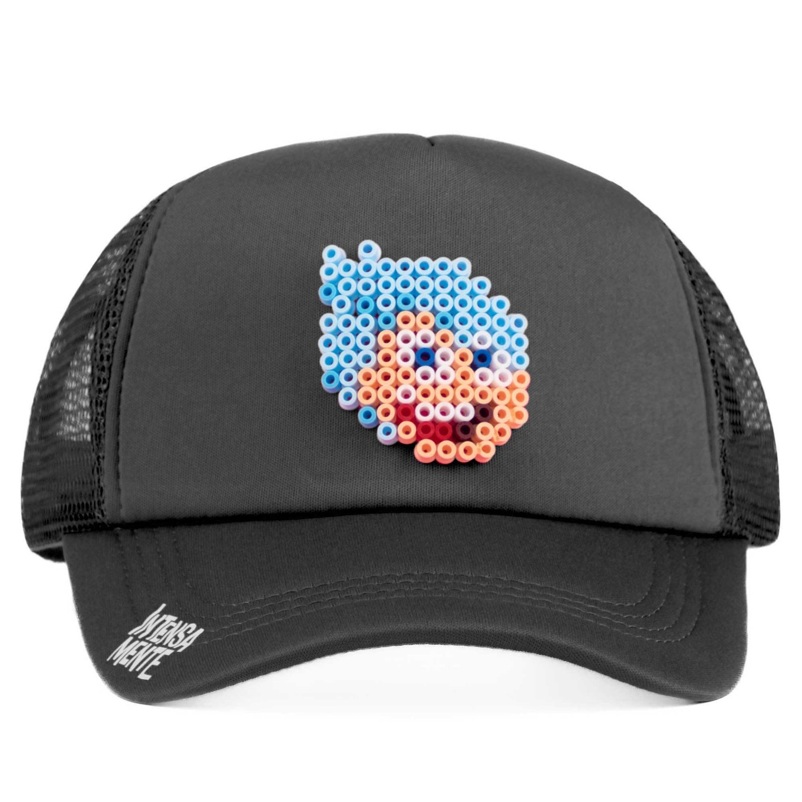 Gorra con cierre ajustable, diseño elaborada a mano con la técnica pixel art.