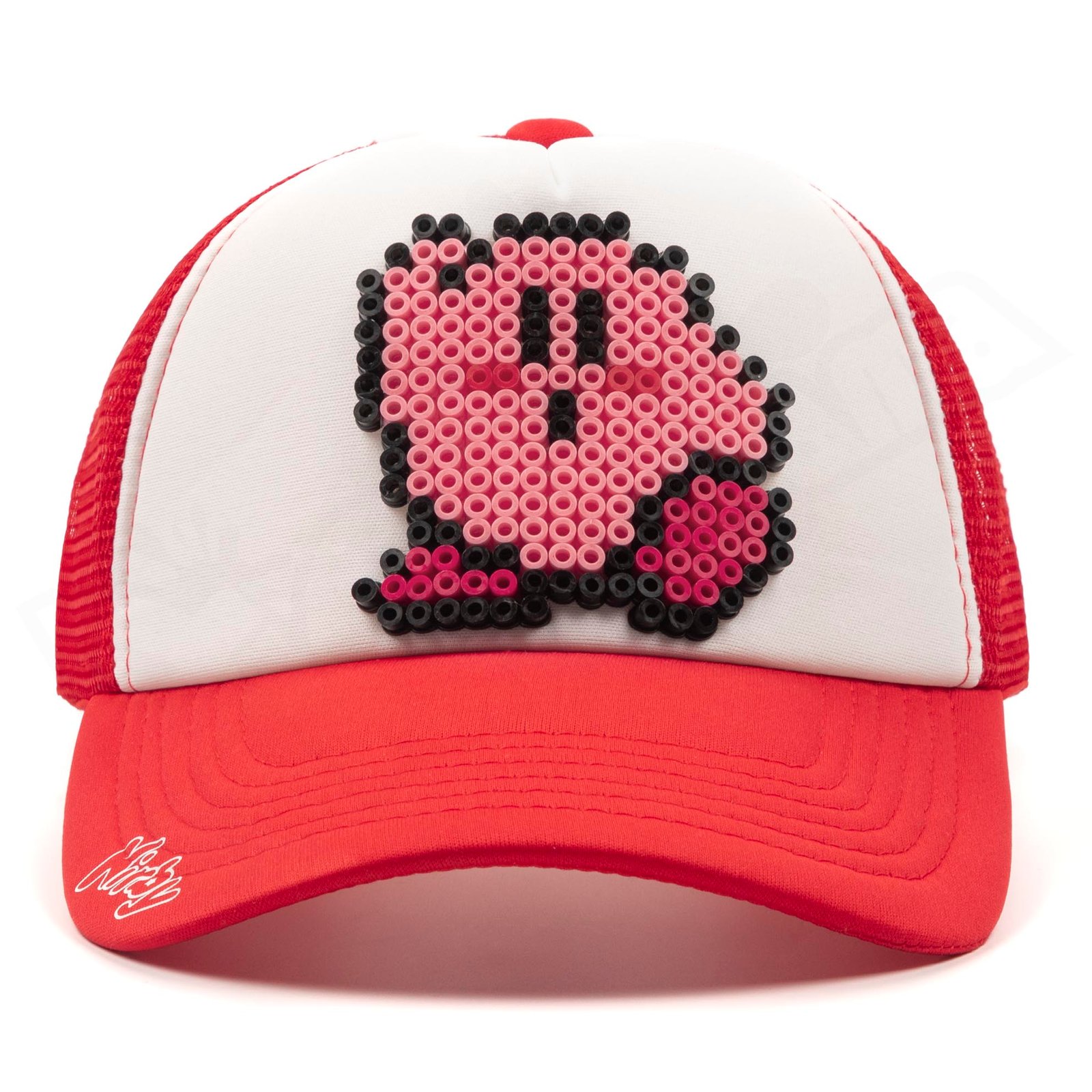 Gorra con cierre ajustable, diseño elaborada a mano con la técnica pixel art.