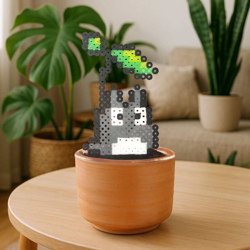 Puedes decorar tu espacio del hogar u oficina con esta hermosa planta artificial, elaborada a mano con la técnica pixel art.
