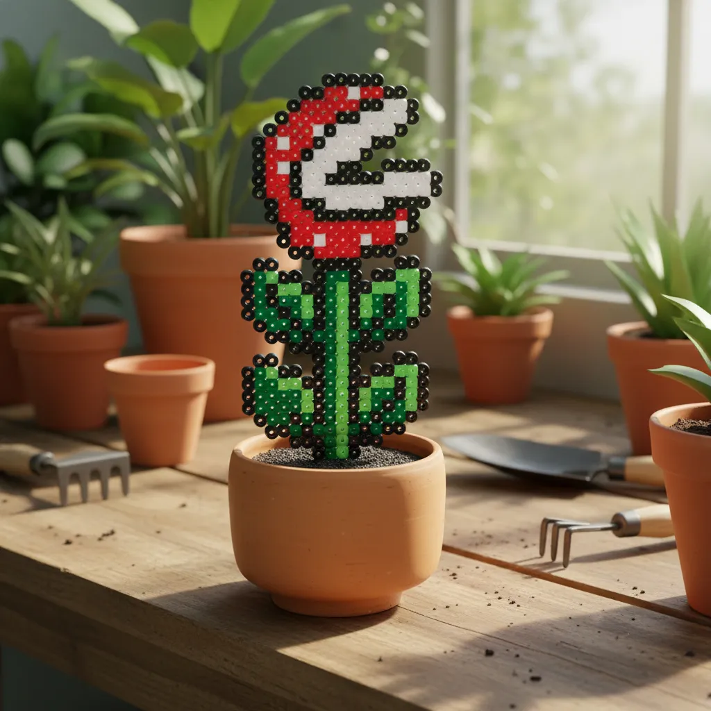 Puedes decorar tu espacio del hogar u oficina con esta hermosa planta artificial, elaborada a mano con la técnica pixel art.